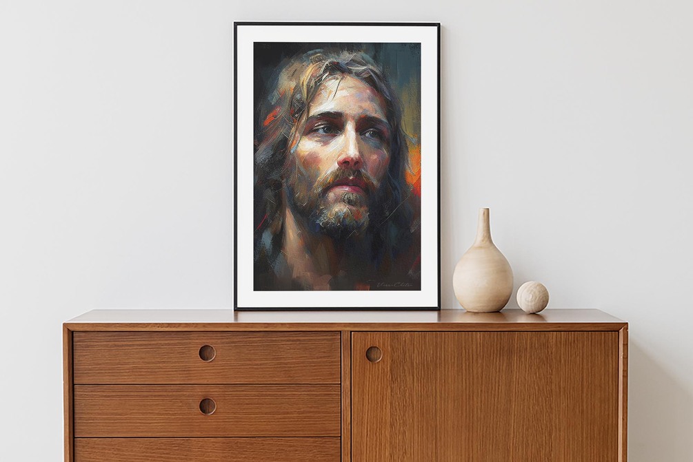 Unique High Resolution Digital Painting of Jesus Christ in Impasto Oil Pinting Style. Extra Large Size.